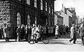 NATO karşıtları, NATO yanlıları ve polis arasında çatışmalar patlak veriyor. İzlanda Parlamentosu olan Alþingi camları kırılmış olarak arkada görülmekte. 30 Mart 1949.