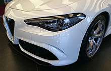 ![]() Seri üretim öncesinde, Haziran 2015'te Alfa Romeo Müzesi'nde tanıtılan Giulia Quadrifoglio. | |