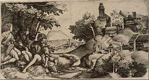 "Çoban Müzisyenler", Domenico Campagnola'nın mürekkep çizimi, y. 1515;