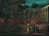- 1 2 3 Renda, Günsel. "Osmanlı Sarayı'nda Görkemli Bir Protokol: Elçi Kabul Törenleri". Osmanlı Bankası Arşiv ve Araştırma Merkezi Voyvoda Caddesi Toplantıları 2005-2006. 15 Ocak 2015 tarihinde kaynağından arşivlendi. http://web.archive.org/web/20150115160521/http://www.obarsiv.com:80/vct_0506_gunselrenda.html. Erişim tarihi: 12 Nisan 2016.