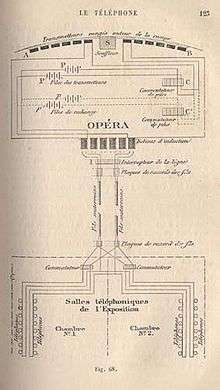 Ader'in sistemi 1890'da Paris'te "théâtrophone" adıyla ticari bir hizmet olarak sunulmaya başladı. Bu hizmet, MM. Marinovitch ve Szarvady tarafından kurulan Compagnie du Théâtrophone (Théâtrophone Şirketi) tarafından sunuluyordu[5] ve abonelerin tiyatro ile opera gösterilerini dinlemelerini sağlıyordu. Düzenli aralıklarla beş dakikalık haber porgramlarının da yayınlandığı bu sistem, aynı zamanda telefon gazetesinin de ilk örneğini teşkil ediyordu.[6] Şirket otellere, cafélere, kulüplere ve benzer yerlere, jetonla çalışan telefon alıcıları yerleştirdi. Bu telefonlarda 50 santim karşılığı 5 dakikalık yayın dinlenebiliyordu.[7] Düzenli dinleyicilere yönelik olarak, daha düşük ücretli abonelik biletleri de çıkarılmıştı. Bu servise ayrıca evlerden de abone olunabiliyordu.